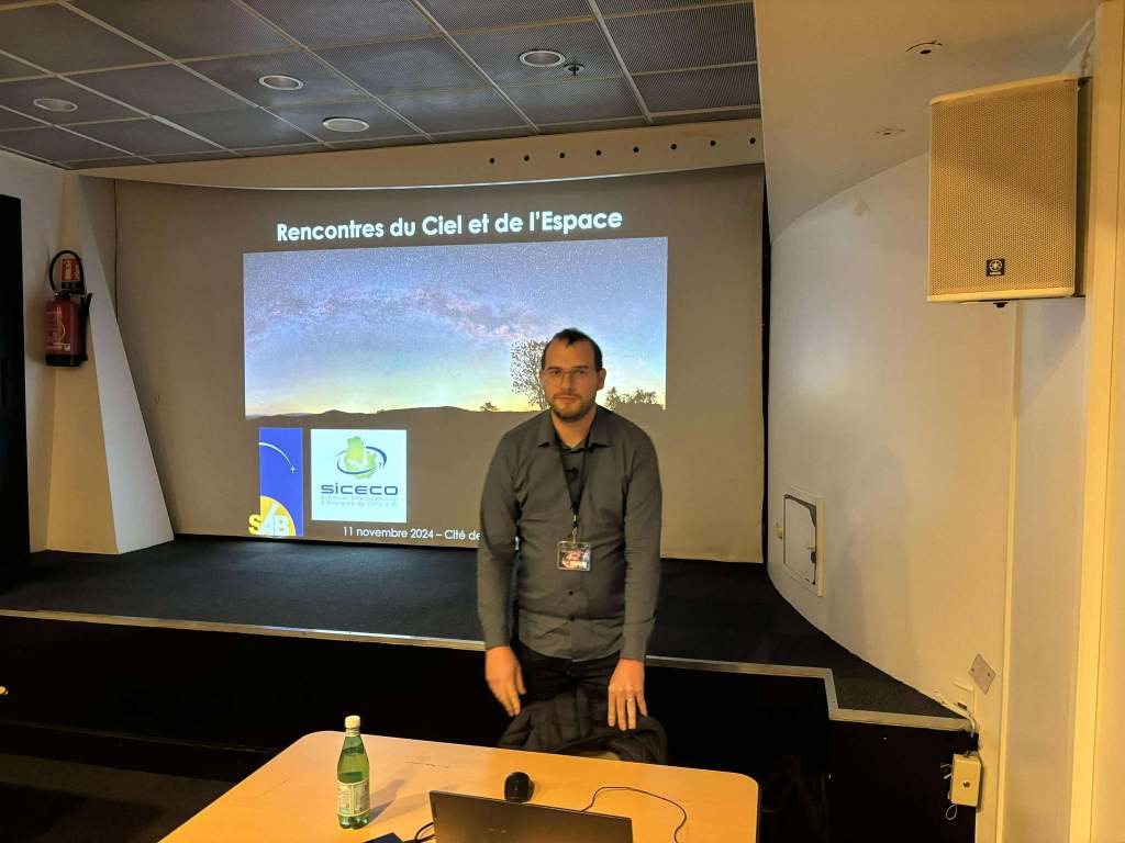 Le 11 novembre dernier, j’ai pu présenter l’avancée des travaux menée en partenariat entre le Syndicat InterCommunal d’Energie de Côte d’Or (SICECO) et la SAB à l’occasion des Rencontres du Ciel & de l’Espace à la Cité des Sciences et de l’Industrie de Paris.